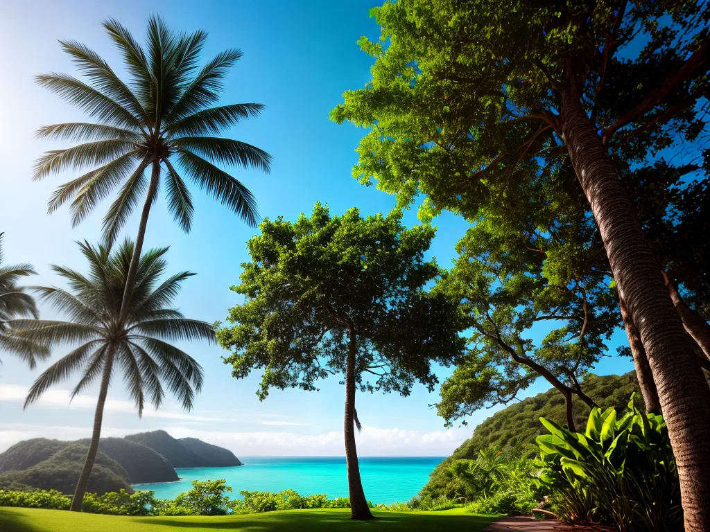 – Coqueiro: árvore tropical de grande porte, caracterizada por seu tronco longo e fino e suas folhas grandes e frondosas.